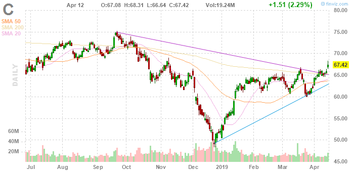Акции C на премаркете выросли до уровня $67.70 (+0.42%).