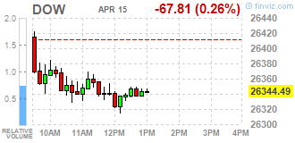 Большинство компонентов DOW в минусе (17 из 30). Аутсайдер - The Goldman Sachs Group (GS; -3.38%). Лидер роста - UnitedHealth Group Inc. (UNH; +1.76%).