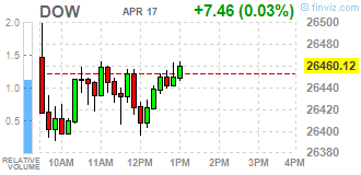 Большинство компонентов DOW в плюсе (17 из 30). Лидер роста - Intel Corp. (INTC; +3.55%). Аутсайдер - IBM (IBM; -3.81%).