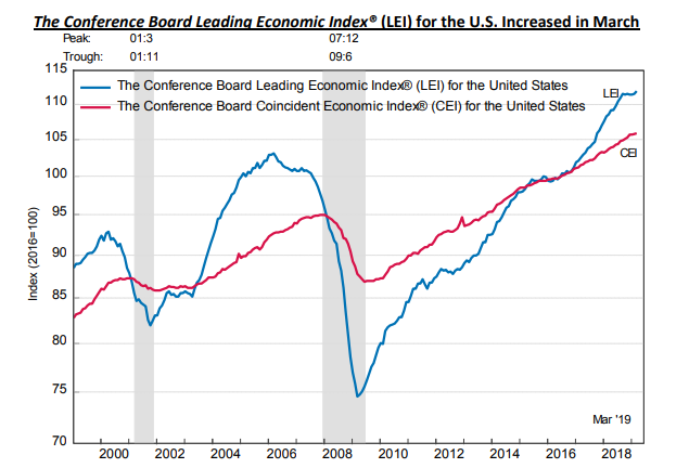 Индекс запаздывающих индикаторов (LAG) от Conference Board для США также поднялся на 0,1 процента в марте, до 107,0 (2016 = 100), после нулевого изменения в феврале и увеличения на 0,6 процента в январе.