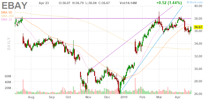 Согласно обнародованному отчету, прибыль компании eBay (EBAY) по итогам первого квартала 2019 финансового года достигла $0.67 в расчете на одну акцию (против $0.53 в первом квартале 2018 года), что оказалось выше среднего прогноза аналитиков на уровне $0.63.