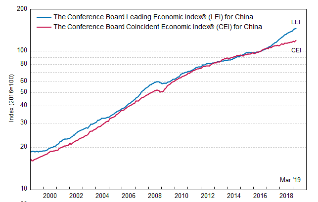 Результаты исследований, опубликованные Conference Board, показали: по итогам марта ведущий экономический индекс (LEI) для Китая вырос на 1,2 процента, и составил 146,1 пункта (2016=100). Напомним, индекс зафиксировал повышение на 1,1 процента в феврале и увеличение на 2,0 процента в январе. В течение шести месяцев (с сентября 2018 года по март 2019 года) показатель вырос на 7,2 процента после увеличения на 6,8 процента за предыдущий шестимесячный период (с августа 2018 года по февраль 2019 года).