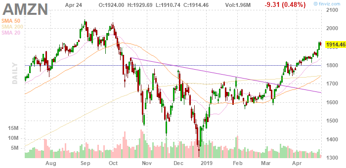 Amazon.com (AMZN) планирует опубликовать отчет о прибыли за первый квартал в четверг после окончания торговой сессии. В J.P. Morgan считают, что основной интерес для рынка в 2019 году будет представлять рост выручки компании.