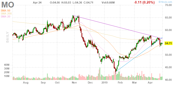 Согласно обнародованному отчету, прибыль компании Altria (MO) по итогам первого квартала 2019 финансового года достигла $0.90 в расчете на одну акцию (против $0.95 в первом квартале 2018 года), что оказалось ниже среднего прогноза аналитиков на уровне $0.93.