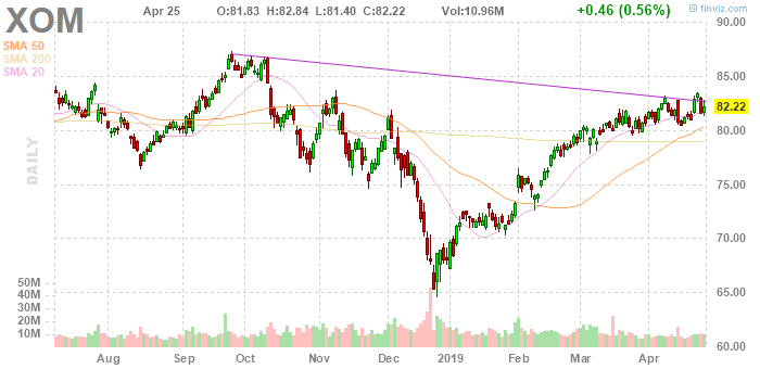 Согласно обнародованному отчету, прибыль компании Exxon Mobil (XOM) по итогам первого квартала 2019 финансового года достигла $0.55 в расчете на одну акцию (против $1.09 в первом квартале 2018 года), что оказалось ниже среднего прогноза аналитиков на уровне $0.74.