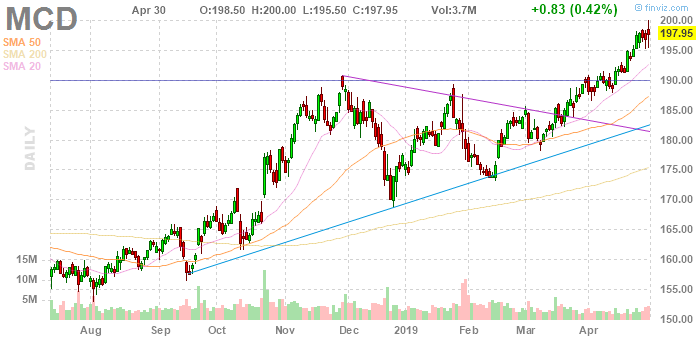 На текущий момент акции McDonald's (MCD) котируются по $197.95 (+0.42%).