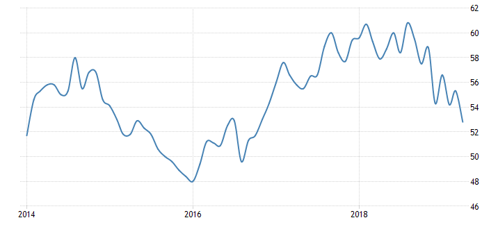 Индекс PMI для производственной сферы снизился в апреле до 52,8 пункта с 55,3 пункта в марте. Последнее значение оказалось самым низким с ноября 2016 года. Аналитики ожидали, что показатель опуститься лишь до 55,0 пункта.