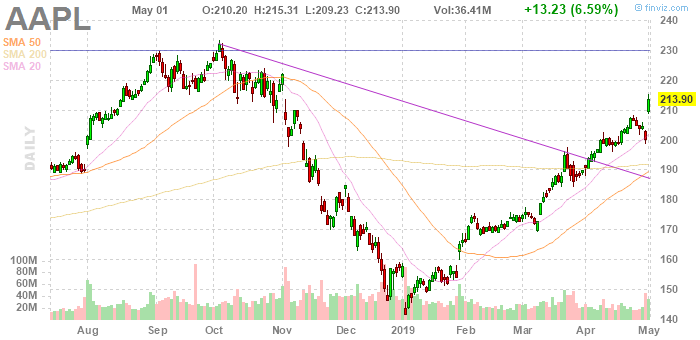 На текущий момент акции Apple (AAPL) котируются по $213.90 (+6.59%).