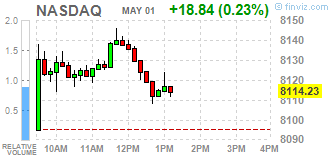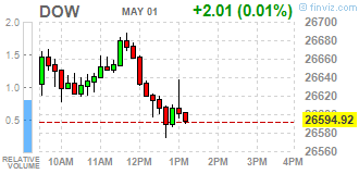 Большинство компонентов DOW в минусе (18 из 30). Аутсайдер - McDonald's Corp. (MCD; -1.47%). Лидер роста - Apple Inc. (AAPL; +6.73%).