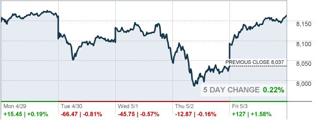 В пятницу основные фондовые индексы США заметно выросли, чему способствовало подорожание акций Amazon (AMZN) и превысившие ожидания данные по занятости в США.. Стоимость акций AMZN повысилась на 3.21% после того, как CNBC сообщила, что Berkshire Hathaway (BRK.B), принадлежащая Уоррену Баффету, впервые купила акции гиганта онлайн-торговли, хотя он не является тем, кто покупал их. Между тем, отчет Министерства труда показал, что в апреле занятость в США выросла, а уровень безработицы упал до более чем 49-летнего минимума в 3.6%, что указывает на устойчивый экономический рост. Согласно отчету, число рабочих мест в несельскохозяйственном секторе увеличилось на 263 000 на фоне роста занятости почти во всех секторах. Данные за февраль и март были пересмотрены, и указали, что было создано на 16 000 больше рабочих мест, чем сообщалось ранее. Экономисты прогнозировали рост занятости на 185 000. В то же время уровень безработицы снизился до 3.6% в апреле с 3.8% в марте, тогда как экономисты прогнозировали, что показатель сохранится на мартовском уровне. Отчет также указал на стабильный рост зарплаты в прошлом месяце, что соответствует умеренной инфляции. Средняя почасовая заработная плата выросла на шесть центов, или на 0.2% в апреле после роста на такую же величину в марте. Это позволило сохранить ежегодный рост заработной платы на уровне 3.2%.