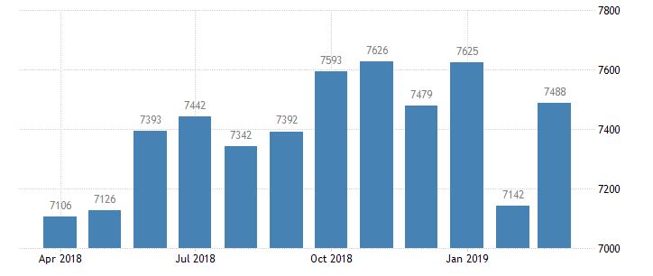Обзор вакансий и текучести рабочей силы (JOLTS), опубликованный Бюро статистики труда США, показал, что в марте количество вакансий выросло до 7,488 млн. с 7,142 млн. в феврале (пересмотрено с 7,087 млн.). Аналитики ожидали, что число вакансий вырастет лишь до 7,24 млн. Уровень вакансий вырос на 0,2 процента, и составил 4,7 процента. Количество вакансий увеличилось в частном секторе (+363 000) и почти не изменилось в правительственной сфере. Количество вакансий выросло в ряде отраслей, при этом наибольшее повышение произошло в сфере транспорта, складирования и коммунальных услуг (+87 000), строительства (+ 73 000), а также недвижимости, аренды и лизинга (+ 57 000). Однако, число вакансии сократились в федеральном правительстве (-15 000).