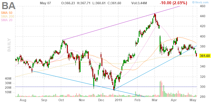 На текущий момент акции Boeing (BA) котируются по $361.60 (-2.69%).