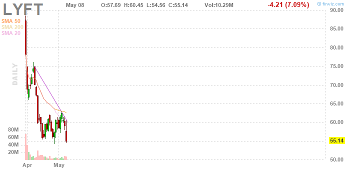 На текущий момент акции Lyft (LYFT) котируются по $55.14 (-7.09%).