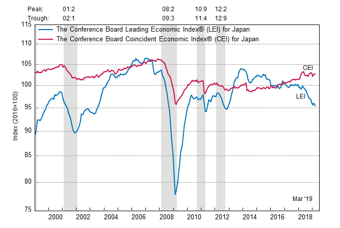 Результаты исследований, опубликованные Conference Board, показали: по итогам марта ведущий экономический индекс (LEI) для Японии снизился на 0,6 процента, и составил 95,4 пункта (2016=100). Напомним, индекс зафиксировал повышение на 0,3 процента в феврале и снижение на 0,4 процента в январе. В течение шести месяцев (с сентября 2018 года по март 2019 года) показатель упал на 2,3 процента после снижения на 2,1 процента за предыдущий шестимесячный период (с августа 2018 года по февраль 2019 года).
