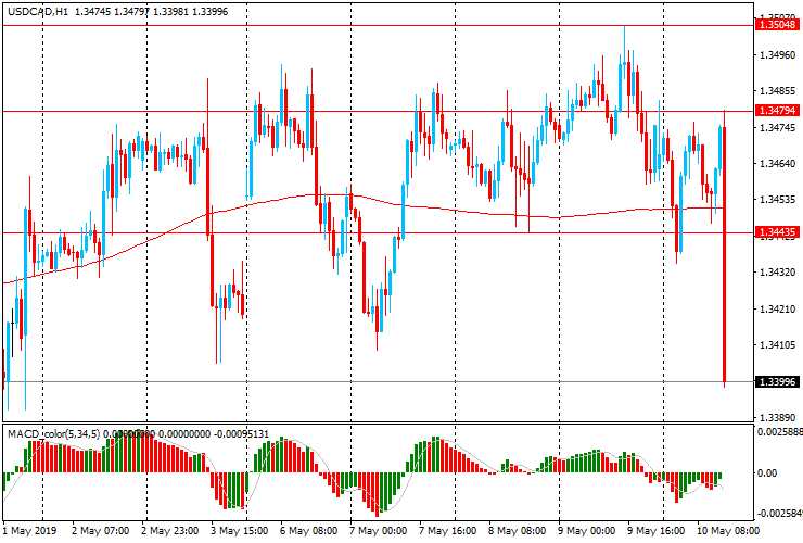 Канадский доллар резко вырос после публикации оптимистичных данных по рынку труда. Пара USD/CAD резко снизилась с $1.3480 до $1.3400. Ближайшее сопротивление пары - $1.3445 (минимум 8 мая). Сильный уровень поддержки - C$1.3375 (минимум 1 мая)