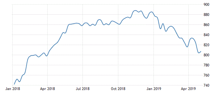 Отчет нефтесервисной компании Baker Hughes показал: с 4 по 10 мая количество активных буровых установок по добыче нефти в США упало на 2 штуки, и составило 805 единиц. Напомним, годом ранее количество установок составляло 844 штуки. Количество установок по добыче газа не изменилось, составив 183 единицы. Общее число буровых установок (газовых, нефтяных и прочих) снизилось на 2 штуки, до 988 штук.