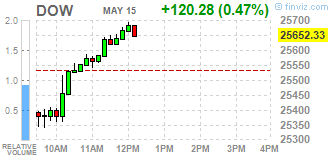 Почти все компоненты DOW в плюсе (25 из 30). Лидер роста - Visa Inc. (V; +1.69%). Аутсайдер - 3M Co. (MMM; -0.11%).