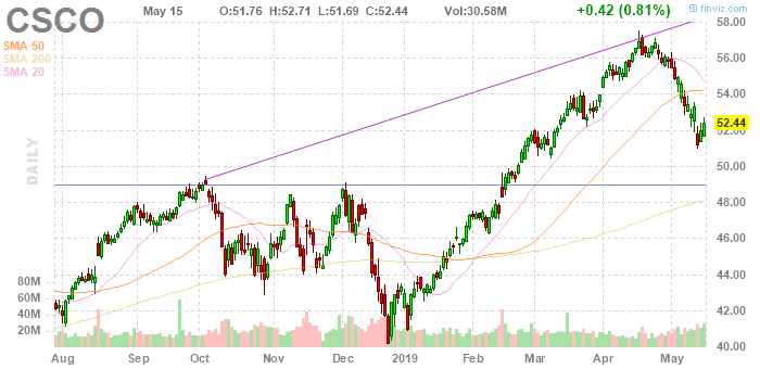 Акции CSCO на премаркете выросли до уровня $54.25 (+3.45%).