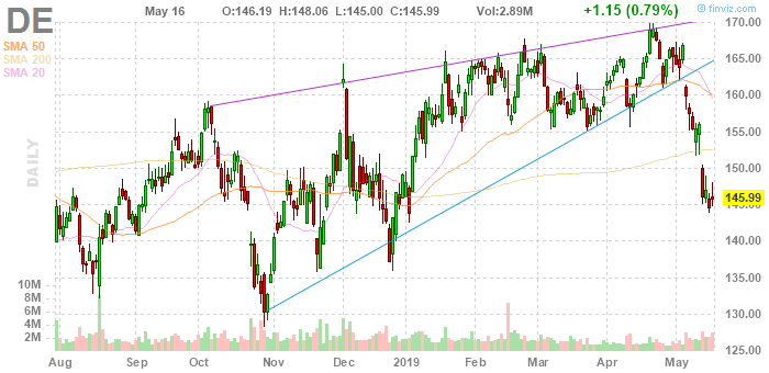 Акции DE на премаркете снизились до уровня $139.50 (-4.45%).