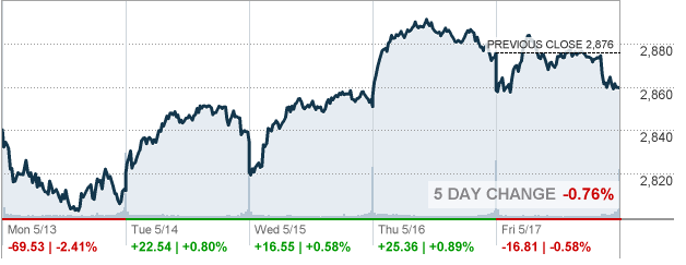 В четверг фондовые индексы США заметно выросли на фоне солидных квартальных результатов Cisco Systems (CSCO) и Walmart (WMT), а также оптимистичных макроэкономических данных, указывающими на силу американской экономики. В Министерстве труда сообщили, что число обращений за пособием по безработице, упало больше, чем ожидалось на прошлой неделе, что указывает на устойчивую силу рынка труда, которая должна поддержать экономику в условиях замедления роста. Согласно отчету, число заявок на получение пособий по безработице сократилось на 16 000 до 212 000 за неделю, закончившуюся 11 мая. Экономисты прогнозировали, что количество обращений упадет до 220 000. Отчет Министерства торговли показал, что объемы строительства жилья выросли в апреле на 5.7% до 1.235 млн. единиц, что обусловлено ростом строительства как одно-, так и многоквартирных домов. Данные за март были пересмотрены до 1.168 млн. с 139 млн.. В то же время, разрешения на строительство выросли на 0.6% до 1.296 млн единиц. Экономисты ожидали, что количество новых домов увеличится до 1.205 млн.