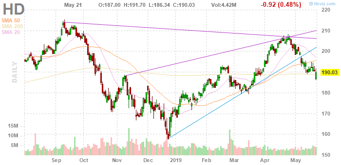 На текущий момент акции Home Depot (HD) котируются по $190.03 (-0.48%).