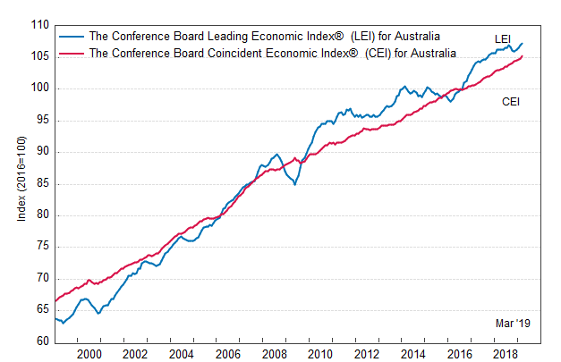Результаты исследований, опубликованные Conference Board, показали: по итогам марта ведущий экономический индекс (LEI) для Австралии вырос на 0,3 процента, и составил 107,2 пункта (2016=100). Напомним, индекс зафиксировал повышением на 0,4 процента в феврале и увеличением на 0,3 процента в январе. В течение шести месяцев (с сентября 2018 года по март 2019 года) показатель вырос на 0,5 процента после снижения на 0,1 процента за предыдущий шестимесячный период (с августа 2018 года по февраль 2019 года).