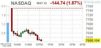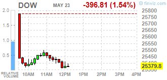 Основные фондовые индексы США демонстрируют существенное снижение (больше, чем на 1.5% каждый), так как инвесторы распродают акции технологических, промышленных и энергетических компаний, опасаясь, что усиливающаяся торговая война между США и Китаем окажет негативное влияние на мировую экономику.