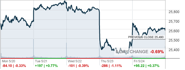 В пятницу основные фондовые индексы США немного выросли в преддверии длинных выходных из-за Дня памяти в США в понедельник, так как участники рынка вздохнули с некоторым облегчением после того, как президент Дональд Трамп заявил, что затяжная торговая война с Китаем может скоро закончиться. Трамп сказал журналистам в четверг, что он ожидает, что торговая война между США и Китаем быстро закончится. Он также отметил, что торговая сделка с Китаем может снять жесткие ограничения, введенные в отношении китайского телекоммуникационного гиганта Huawei. Комментарии президента несколько подняли настроения инвесторов, хотя все более очевидным становится тот факт, что торговая война продлится дольше, чем ожидалось. Инвесторы также анализировали отчет от Министерства торговли, который показал, что заказы на товары длительного пользования упали на 2.1% в апреле после роста на 1.7% в предыдущем месяце (пересмотрено с +2.7%). Экономисты прогнозировали снижение на 2%. Согласно отчету, основной причиной снижения основного показателя стало падение заказов на транспортное оборудование (-5.9%). Между тем, за исключением резкого падения заказов на транспортное оборудование, заказы на товары длительного пользования не изменились в апреле после пересмотренного падения на 0.5% в марте. Экономисты ожидали рост показателя на 0.2%.