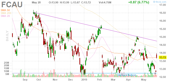 На текущий момент акции Fiat Chrysler (FCAU) котируются по $13.72 (+6.77%).