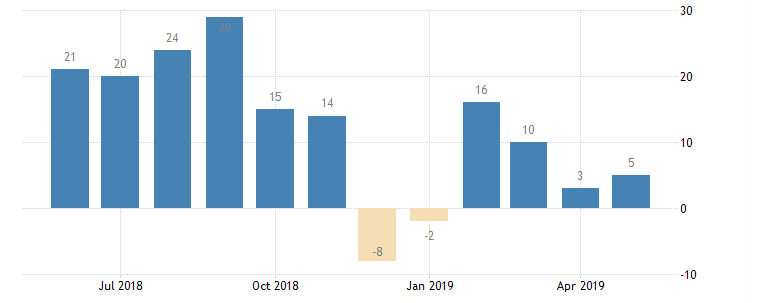 Согласно данным опроса, композитный индекс вырос с 3 пункта в апреле до 5 пунктов в мае. Экономисты прогнозировали, что индекс составит 6 пунктов. Напомним, значение индекса выше 0 указывает на расширение активности.