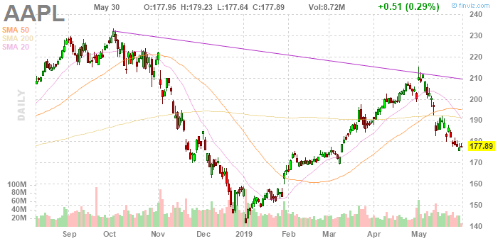 Как сообщает агентство Bloomberg, аналитики Morgan Stanley полагают, что у акций Apple Inc. (AAPL), которые упали примерно на 7% после того, как США предприняли шаги по ограничению деятельности Huawei Technologies Co. в начале этого месяца, краткосрочный минимум на уровне $160, что примерно на 10% ниже цены закрытия среды.