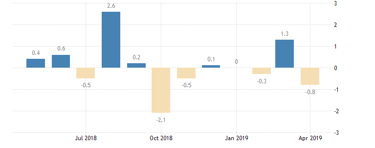 В отчете также говорится, что поставки промышленных товаров упали на 0,5% после двух последовательных ежемесячных увеличений, в то время как запасы промышленных товаров увеличились на 0,3%.