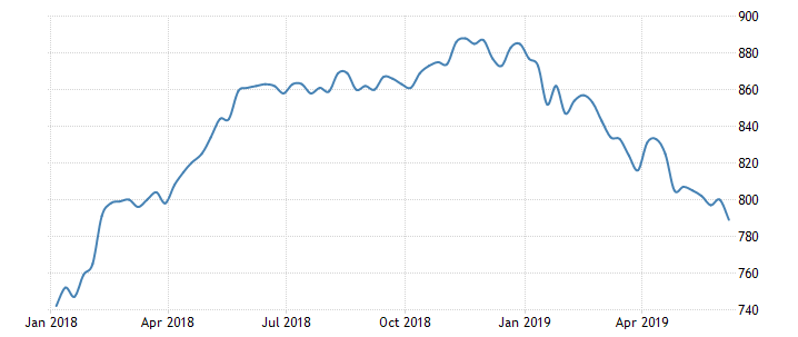 Отчет нефтесервисной компании Baker Hughes показал: с 1 по 7 июня количество активных буровых установок по добыче нефти в США упало на 11 штук, и составило 789 едини. Напомним, годом ранее количество установок составляло 862 штуки. Количество установок по добыче газа выросло на 2 штуки, составив 186 единицы. Общее число буровых установок (газовых, нефтяных и прочих) снизилось на 9 штук, до 975 штук.
