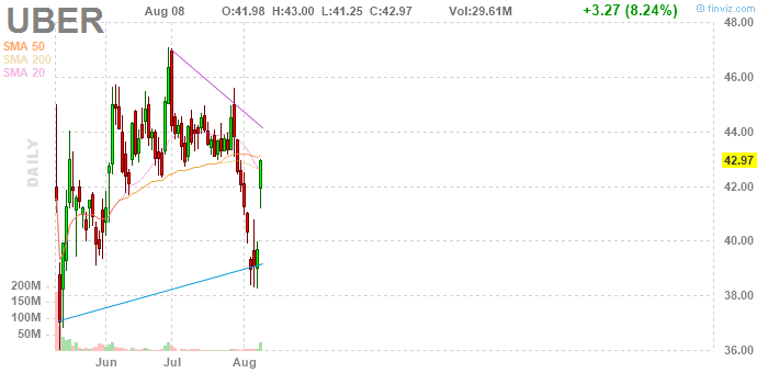 Акции UBER на премаркете снизились до уровня $39.52 (-8.03%).