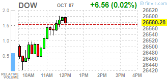 Большинство компонентов DOW в плюсе (16 из 30). Лидер роста - UnitedHealth Group Inc. (UNH; +1.00%). Аутсайдер - The Coca-Cola Co. (KO; -0.95%).