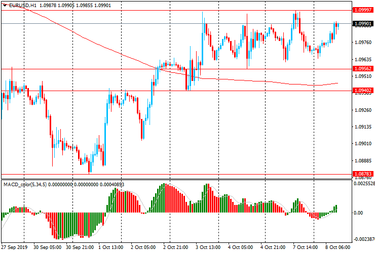 ЕUR/USD: в течение европейской сессии пара торгуется с ростом, но остается в рамках диапазоне $1.0955-1.1000 наблюдаемого в течении трех сессий подряд