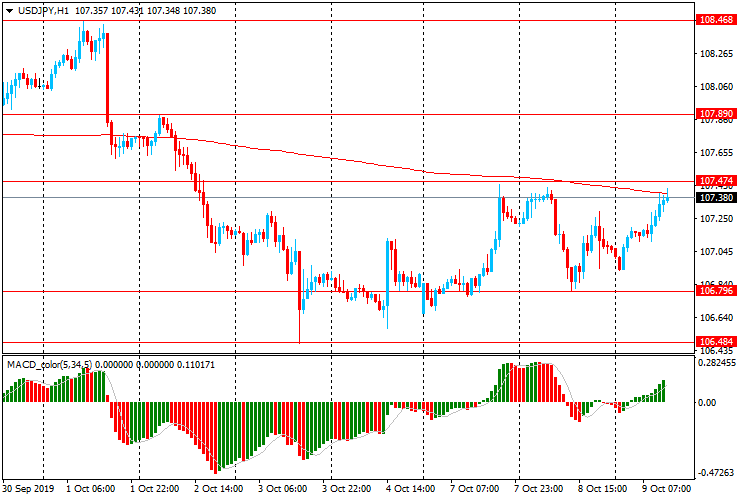 USD/JPY: в течение европейской сессии пара торгуется с ростом полностью вернув утраченные вчера позиции. Пара выросла к максимуму 7-8 октября Y107.45 после снижения вчера до Y106.80