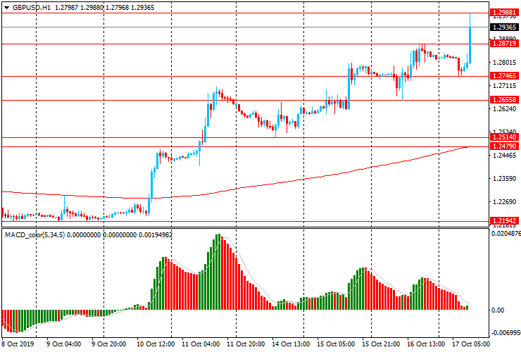 Фунт резко вырос против американской валюты на новостях по Brexit . В настоящий момент пара GBP/USD торгуется на уровне $1.2935 после роста с $1.2745 до $1.2988. Ближайшее сопротивление - $1.3045 (максимум 10 мая). Сильный уровень поддержки - $1.2655 (минимум 16 октября).