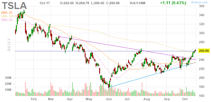 На текущий момент акции TSLA котируются по $260.86 (+0.43%).