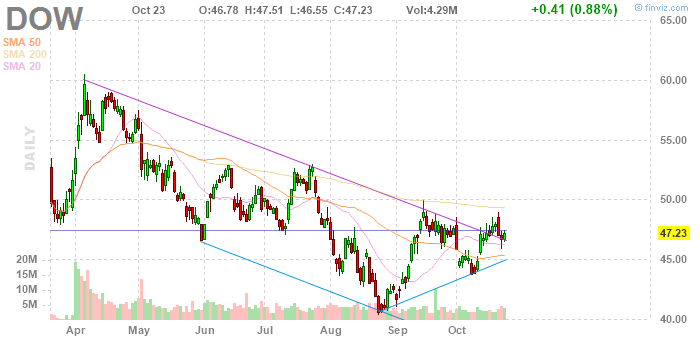 Акции DOW на премаркете выросли до уровня $48.83 +3.39(%).