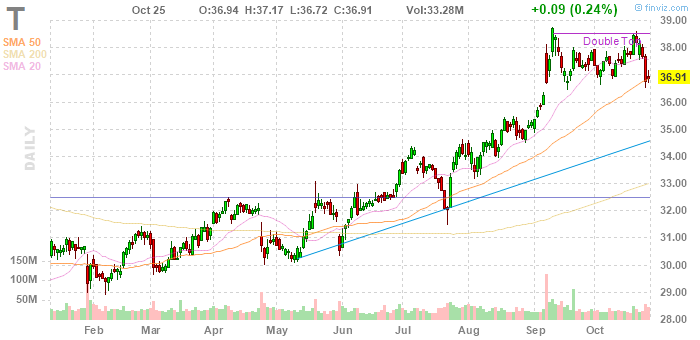 Акции T на премаркете выросли до уровня $37.15 (+0.65%).