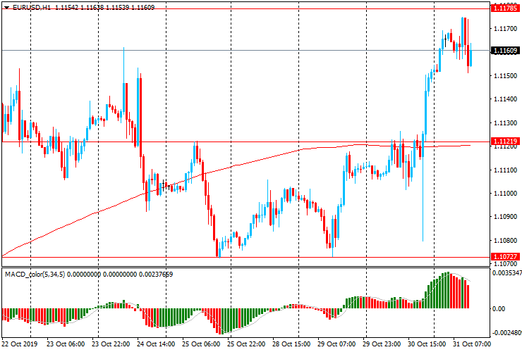 ЕUR/USD: в течение европейской сессии пара торгуется в диапазоне $1.1150-75 около максимума 22 и 24 октября
