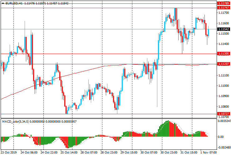 ЕUR/USD: в течение европейской сессии пара продолжает торговаться около максимума 22 и 24 октября $1.1155