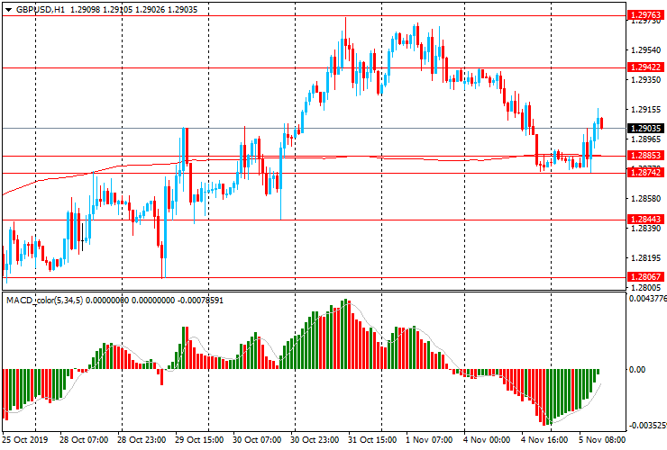 GBP/USD: в течение европейской сессии пара торгуется с ростом, отступив от достигнутого вчера минимума $1.2875. Пара выросла к $1.2915