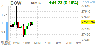 Большинство компонентов DOW в плюсе (17 из 30). Лидер роста - The Boeing Co. (BA; +1.97%). Аутсайдер - The Coca-Cola Co. (KO; -1.91%).