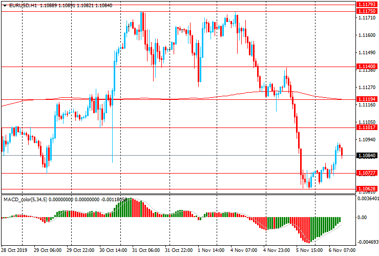ЕUR/USD: пара торгуется с ростом, отступив от трехнедельного минимума $1.1060. Сегодня пара выросла к $1.1090