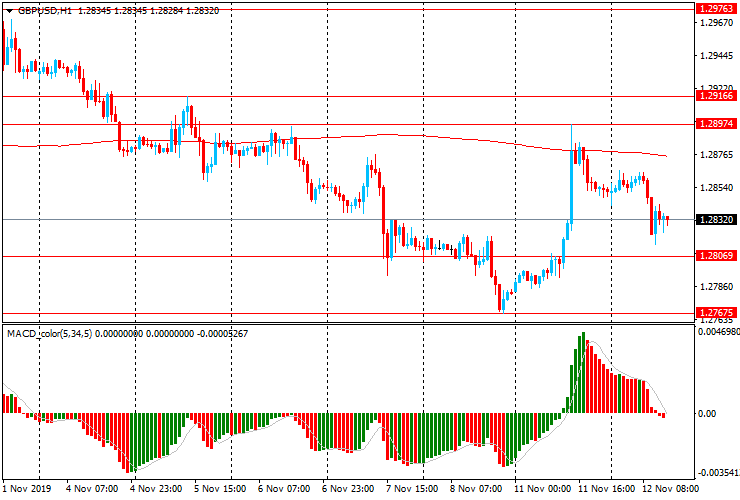 GBP/USD: пара торгуется со снижением после резкого роста вчера с почти трехнедельного минимума $1.2785 до $1.2900. Сегодня пара утратила большую часть завоеванных вчера позиций и снизилась к $1.2825