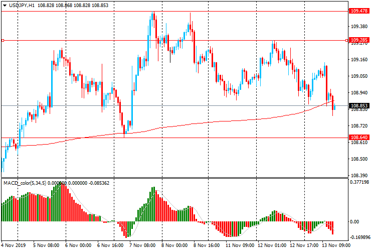 GBP/USD: в течение европейской сессии пара торгуется со снижением после небольшого роста с начала торгов. Пара опустилась ниже вчерашнего минимума до Y108.85 после роста с начала торгов к Y109.15