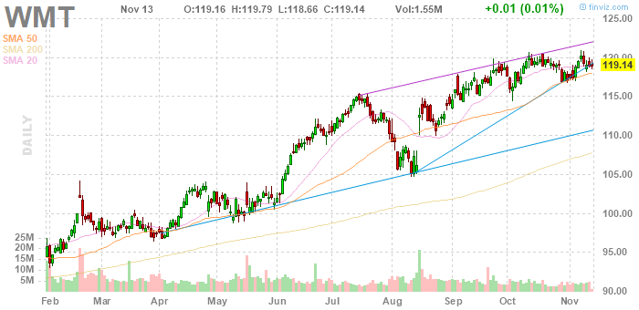 На текущий момент акции WMT котируются по $119.14 (+0.01%).