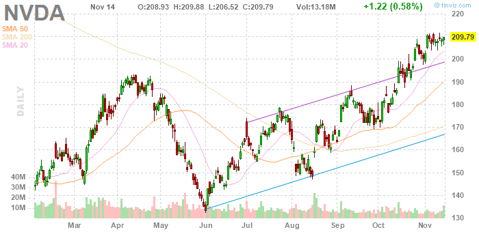 Акции NVDA на премаркете выросли до уровня $210.00 (+0.10%).